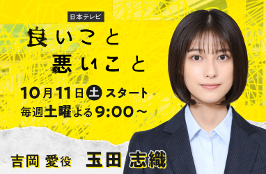 【玉田志織】10月11日(土)スタート、日本テレビ「良いこと悪いこと」出演決定!